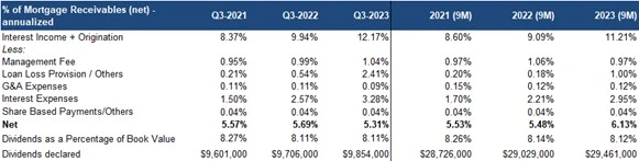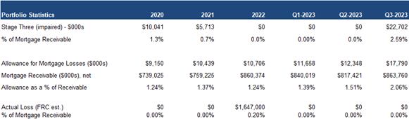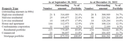 However, stage three (impaired) mortgages increased from nil at the end of Q2-2023, to $23M at the end of Q3-2023 (2.6% of portfolio)