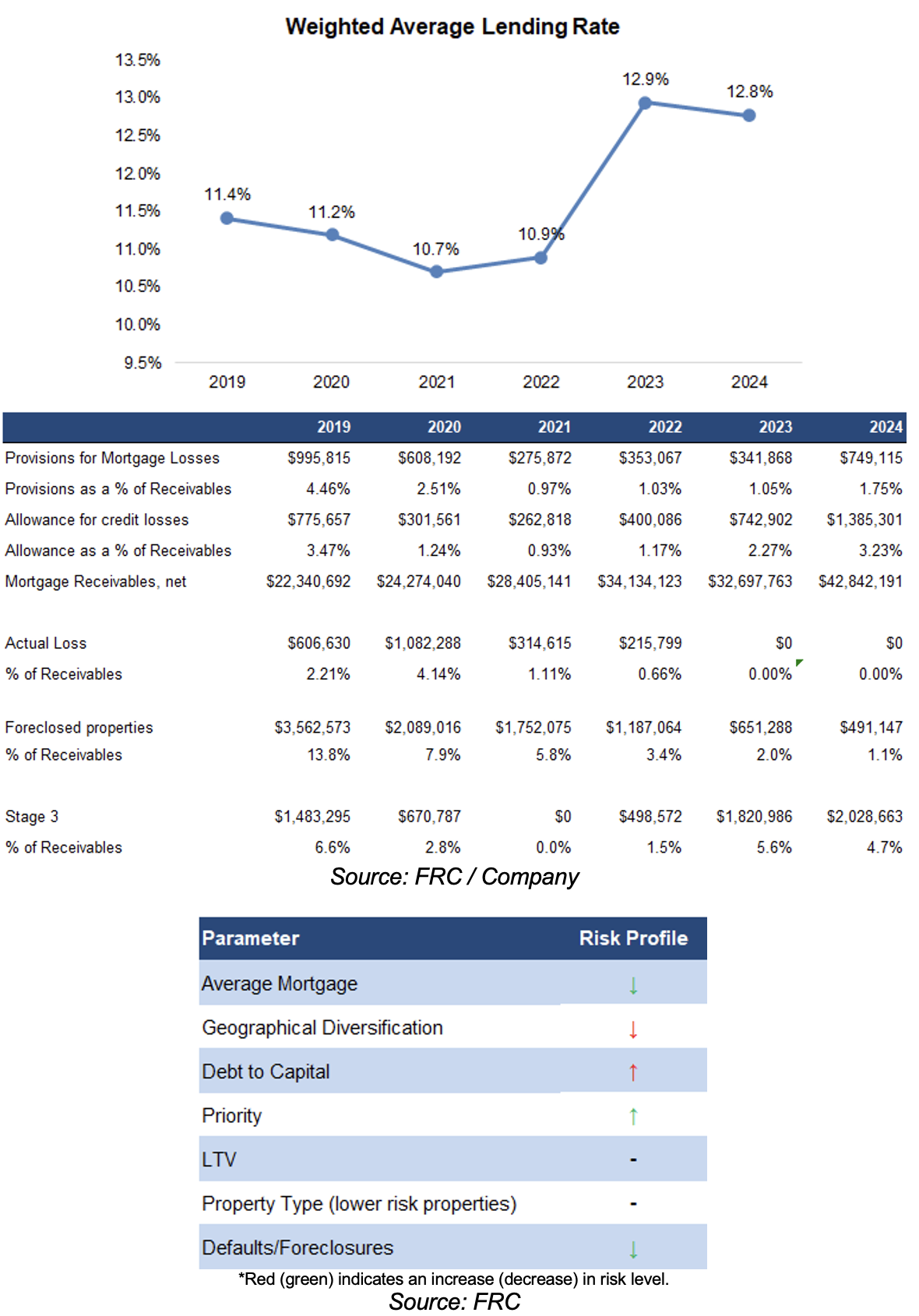 In summary, we believe the portfolio’s risk profile decreased (two red vs three green signals), driven by a significant increase in first mortgages, and fewer stage three mortgages