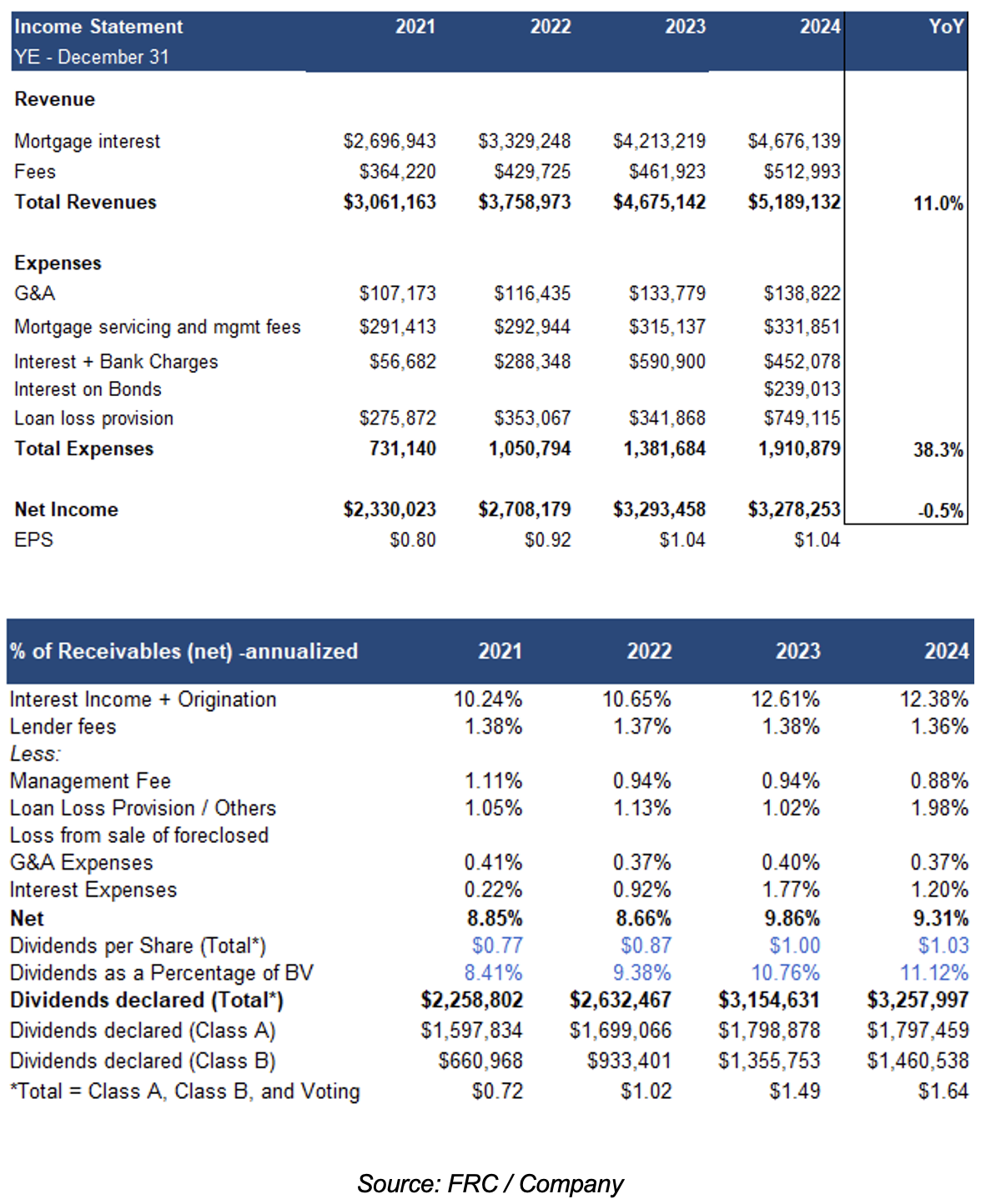 Mortgage advancements were up 24% YoY; repayments were up 1% YoY. As a result, mortgage receivables (net) were up 31% YoY, to a record-high of $43M vs our forecast of $40M