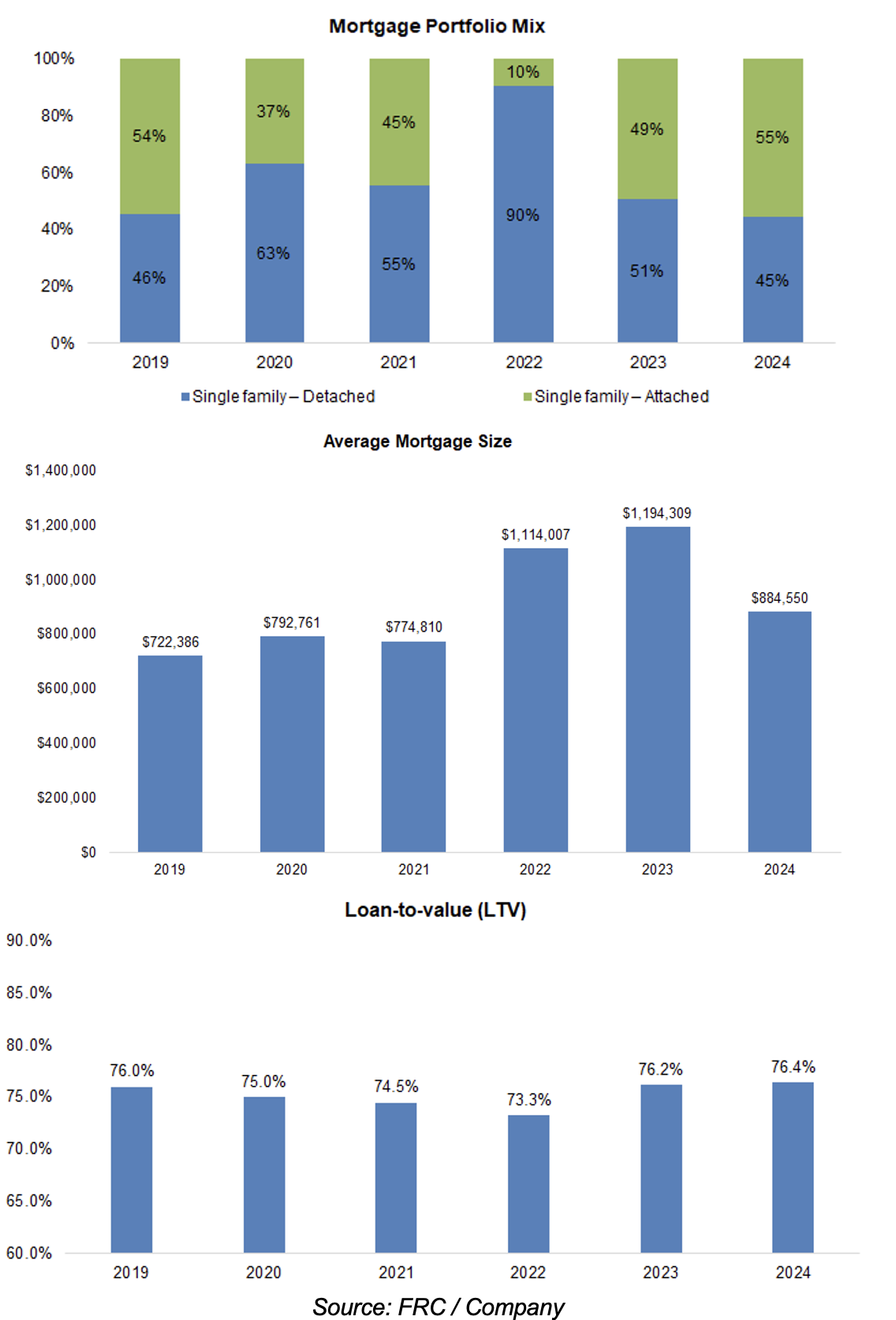 The average mortgage size was down 26%, implying lower risk. LTV remained unchanged