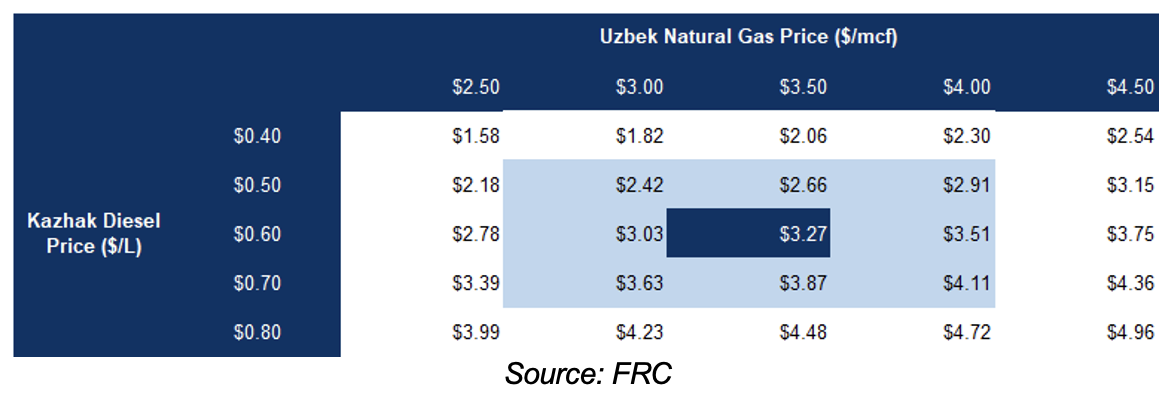 Development Plans: Kazak LNG (proposed 2025 CAPEX: $25M) - CDR intends to roll out a series of modular LNG facilities in a phased development approach. When fully operational, these facilities will produce up to 600 Kt of LNG annually, potentially displacing 680 Kt of diesel fuel.