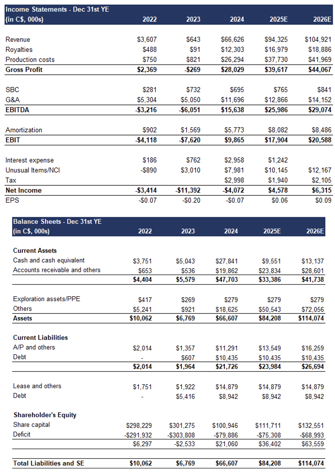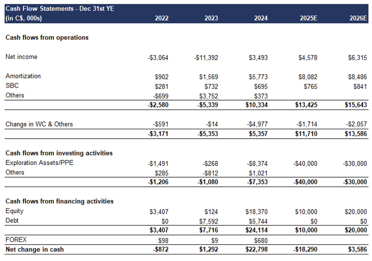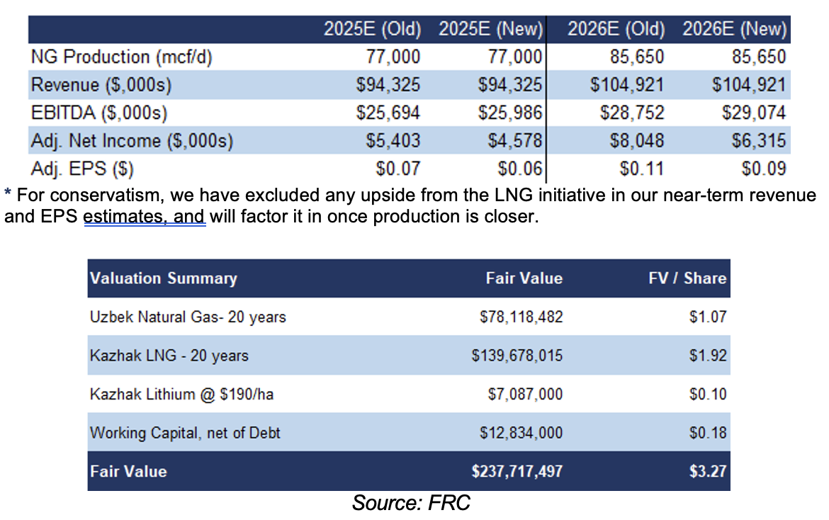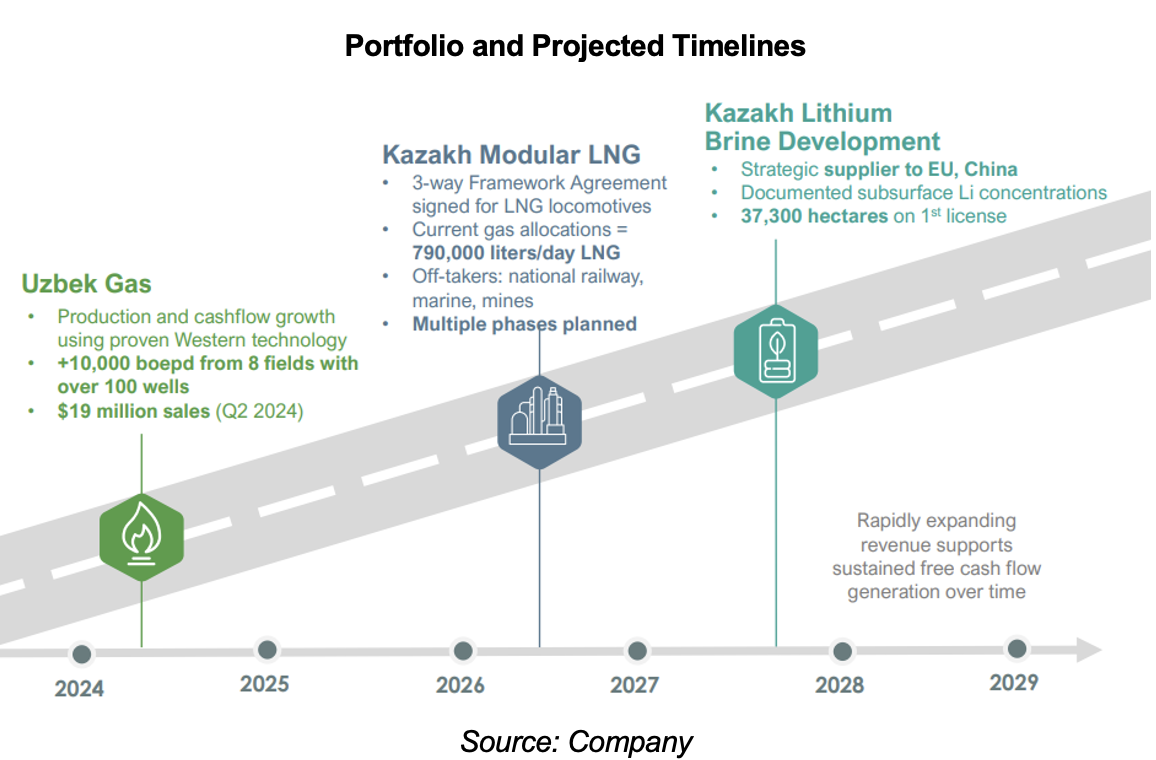 Development Plans: Kazak Lithium (proposed 2025 CAPEX: n/a) - CDR is collecting and evaluating historical data, with no firm plans to drill any wells this year. We note that delineating a lithium resource is a faster and cheaper process vs mainstream metals such as gold and copper.