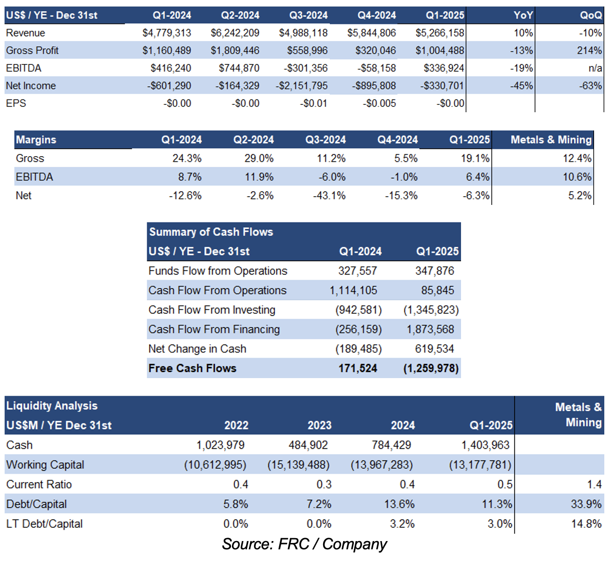Notably, depreciation expenses decreased significantly, driven by an increase in the resource estimate in Q1-2025. Although fund flows from operations increased, free cash flows declined primarily due to increased investment in mining equipment to support higher production