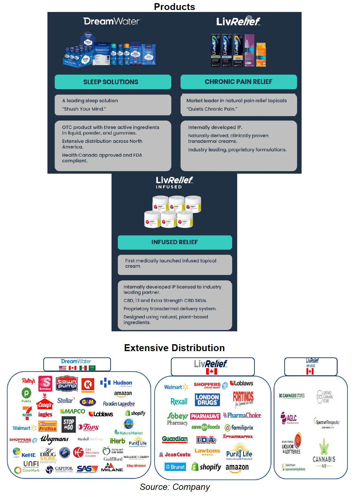 Two Primary Brands: Dream Water (sold in the U.S./Canada/the Middle East), and LivRelief (sold in Canada)