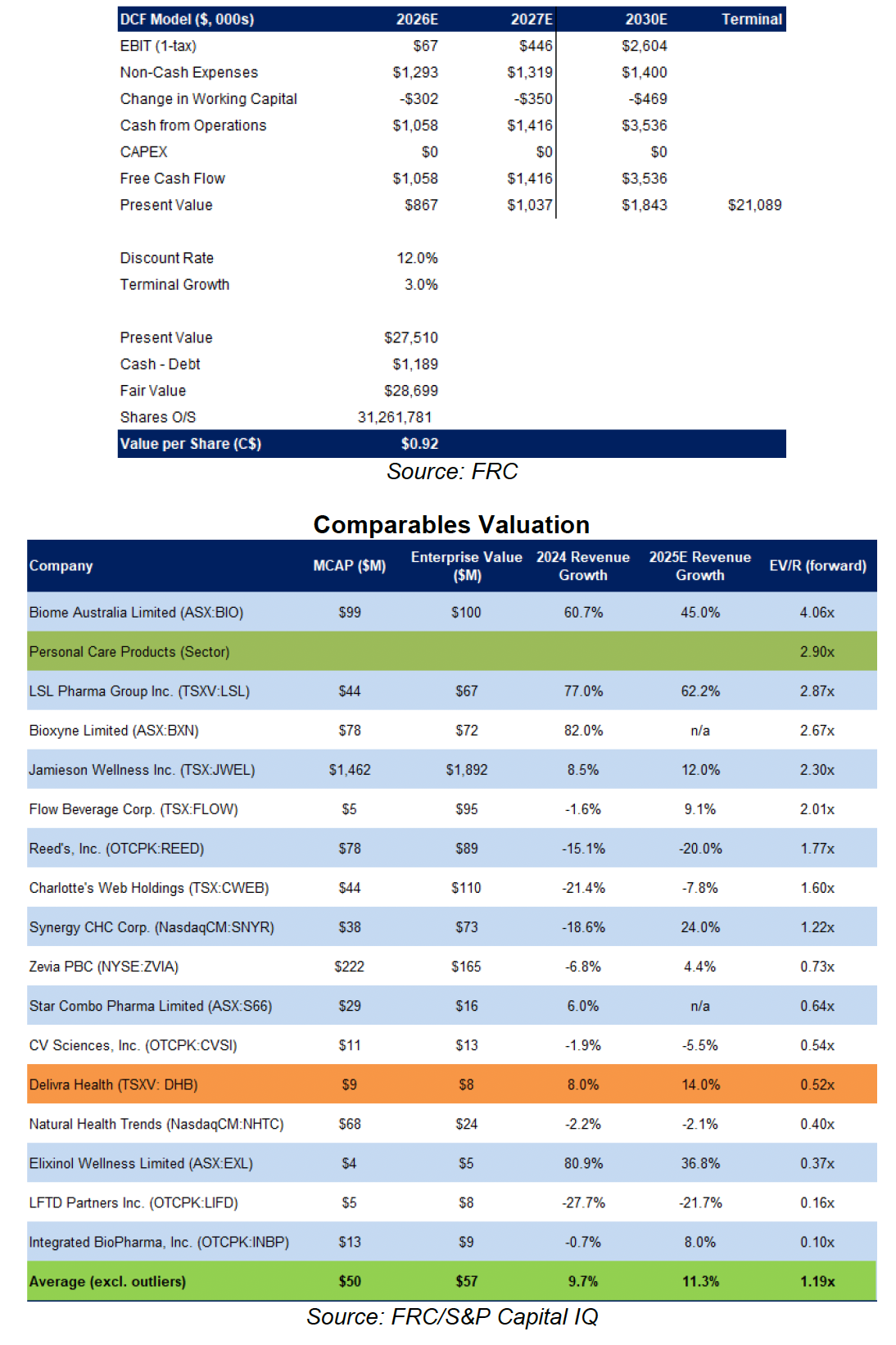 We are reiterating our BUY rating, while adjusting our fair value estimate from $0.72 to $0.77/share (the average of our DCF and comparables valuations). We believe DHB’s robust revenue growth and strategic initiatives position the company for sustained long-term expansion. Continued market penetration, geographic growth, and targeted M&A are expected to enhance product reach and profitability. Valuation metrics suggest DHB remains modestly priced relative to peers.