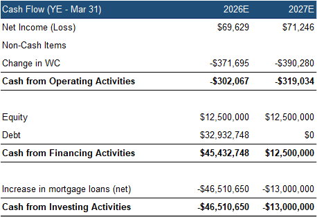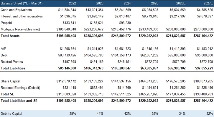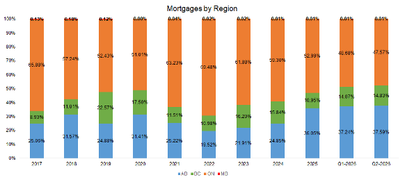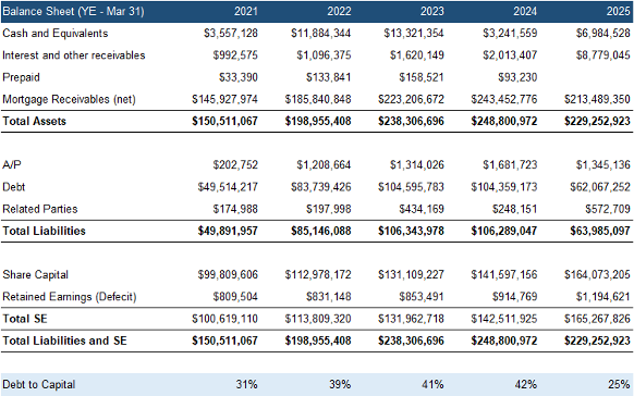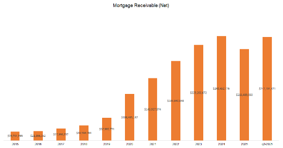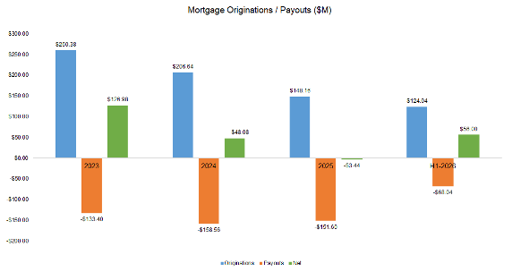 - Mortgage receivables fell 12% YoY to $213M in FY2025, but rose 13% YTD to $242M in H1-FY2026. As of September 2025, 48% of mortgages were in ON, and 38% in AB. First mortgages accounted for 73% of the portfolio.