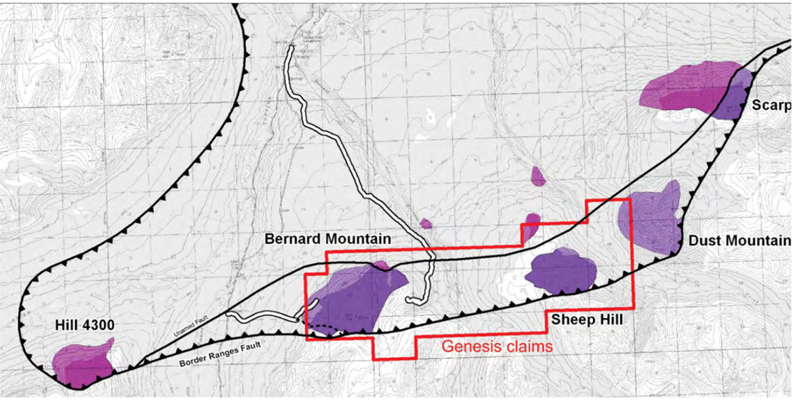 Past exploration has identified two styles of PGM mineralization, spanning 9 km between the Sheep Hill and Bernard Mountain prospects.