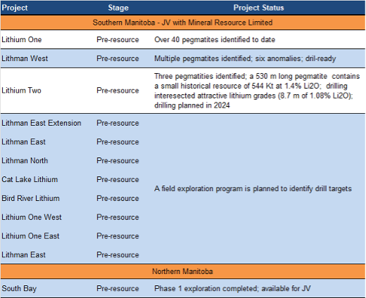 NAM is the largest claim holder in the Winnipeg River field (21,611 ha across 11 properties) in southern Manitoba; Australian lithium producer Mineral Resources Ltd. (MRL) can earn up to a 75% interest in these projects