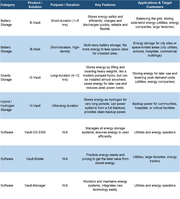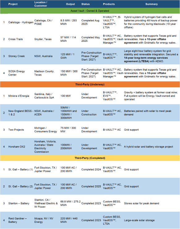 Energy Vault projects span the U.S., Australia, China, and Europe, demonstrating the company’s ability to deploy diverse storage technologies across multiple markets