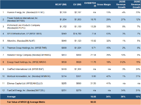 We are initiating coverage with a BUY rating, and a fair value estimate of $4.87/share (the average of our DCF and comparables valuations). We believe NRGV is well-positioned in the growing grid-scale energy storage market, driven by rising power demand, renewable integration, and regulatory support. Its shift to an IPP model with the Asset Vault platform, provides visibility to recurring revenue and long-term EBITDA growth. Trading at a 24% discount to the sector on forward EBITDA, we believe NRGV offers near-term upside potential from its project backlog and upcoming Q3 results.
