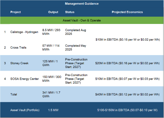 Through Asset Vault, NRGV will develop, build, own, and operate energy storage assets globally. The company is transferring its 100% owned assets, including two operating U.S. projects and two in development (U.S. and Australia), into the platform. Over the next four years, Asset Vault plans to invest $1B in CAPEX across projects totaling 1.5 GW in the U.S., Australia, and Europe, targeting $100-$150M in recurring annual EBITDA.