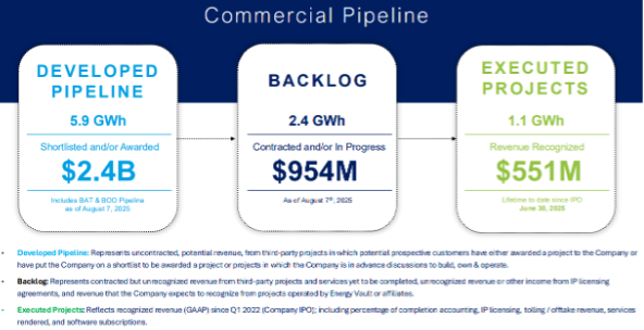 In October 2025, Energy Vault launched Asset Vault, a platform to consolidate and operate its owned energy storage projects. The platform is backed by $300M in non-dilutive financing from Orion Infrastructure Capital (OIC), a U.S.-based infrastructure investment firm managing $5B in assets. Asset Vault marks a key step in NRGV’s evolution toward becoming a fully integrated Independent Power Producer (IPP).