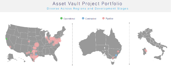 The company is transferring its 100% owned assets, including two operating U.S. projects and two in development (U.S. and Australia), into the Asset Vault platform.