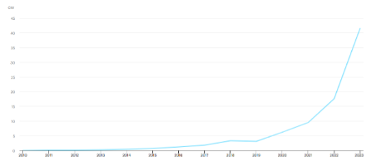Global energy storage capacity additions grew from nearly zero in 2010 to 70 GW by 2024, with rapid acceleration in recent years, and are projected to reach 220 GW by 2035, a CAGR of 15% between 2025 and 2035