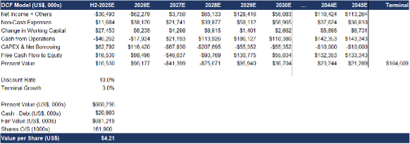Tolling Revenue: Projected at $100-$150M EBITDA. Assuming OIC receives a 12% return ($36M), NRGV retains $64-$114M in annual operating profit, before interest payments on debt, over a potential 20-year asset