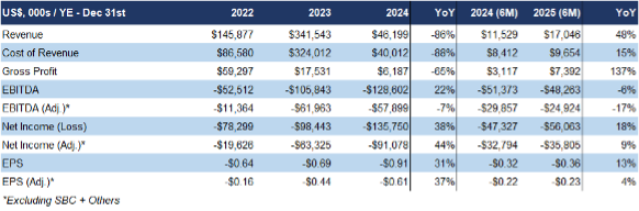 Historically, revenue has been lumpy and tied to project milestones. In H1 2025, three clients accounted for 86% of revenue, while two clients represented 94% of 2024 revenue