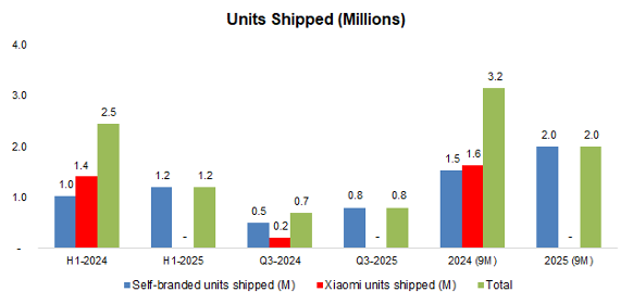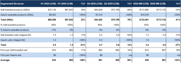 •Xiaomi (SEHK: 1810) Products – Starting Q1-2025, the company ceased manufacturing products for Xiaomi. Xiaomi owns 20% of Zepp’s outstanding shares