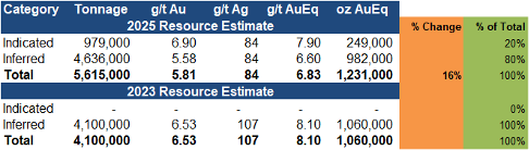 Resources increased 16% to 1.23 Moz AuEq