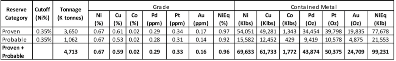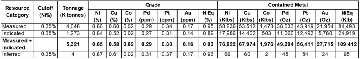 Underground resources total 110 Mlbs NiEq