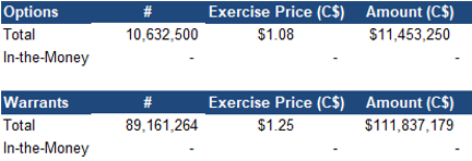 All options and warrants are out of the money