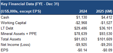 DMET has received final approval to build a 1,000 tpd processing plant, with concentrate production targeted for Q2-2026. The project commenced pre-production in Q2-2025. To date, DMET has shipped material containing 207 oz of gold, and 5 koz of silver.
