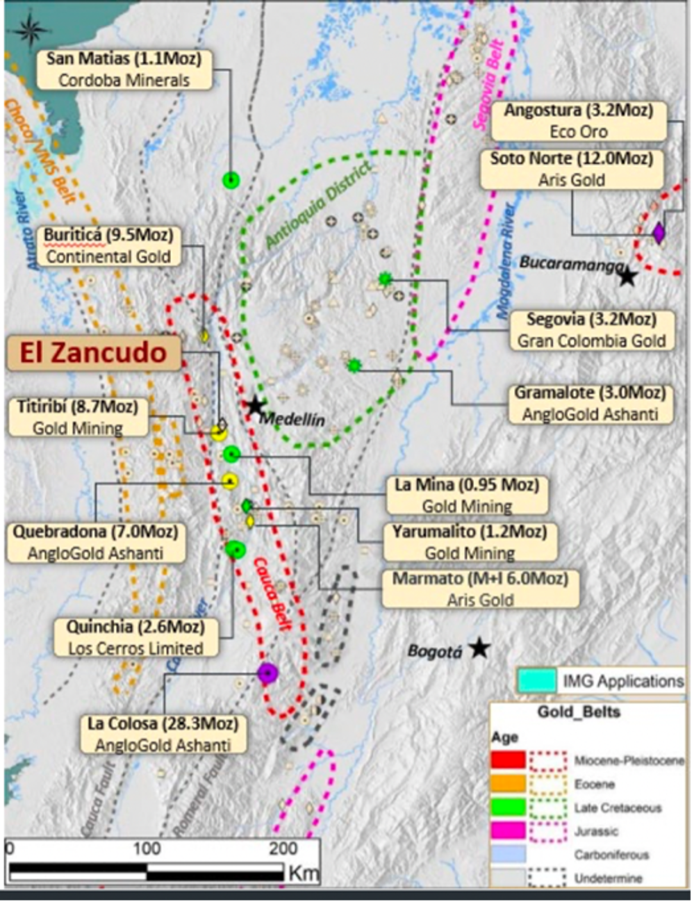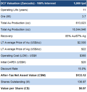 The Zancudo district has produced 1.4-2.0 Moz AuEq