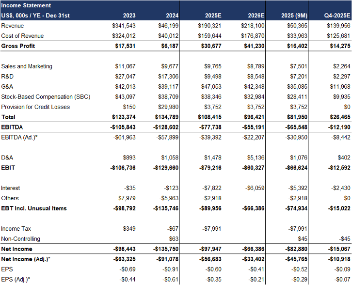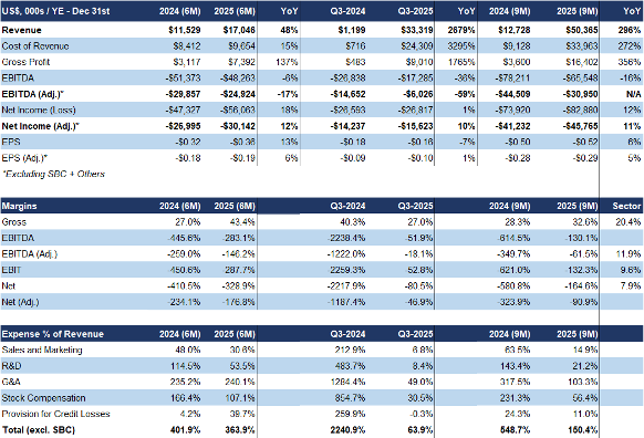 Q3 revenue, dominated by third-party deployment projects, was $33M, exactly in line with our estimate, compared to $1M in Q3-2024, and $17M in H1-2025