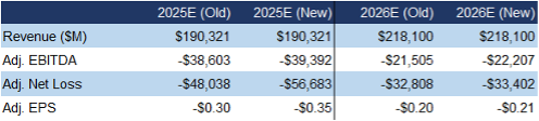 Adj. EBITDA improved significantly, from ($15M) to ($6M) on higher revenue vs our estimate of ($12M)