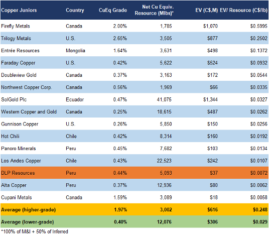 DLP remains one of the most undervalued juniors, trading at $0.007/lb (up from $0.006/lb) versus the sector average of $0.029/lb (previously $0.016/lb)