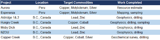 Seven polymetallic projects in Peru and Canada