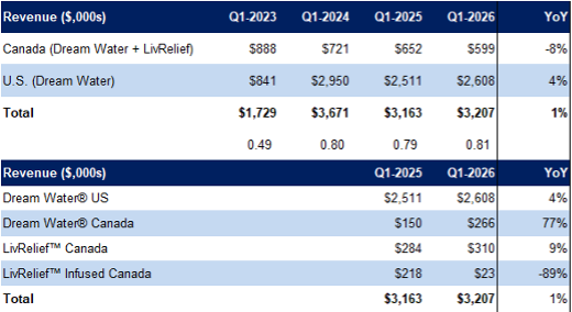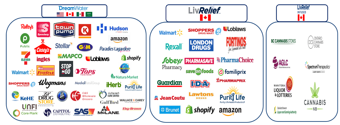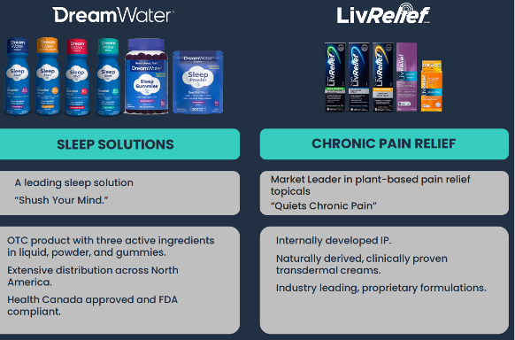 Two Primary Brands: Dream Water (sold in the U.S./Canada/the Middle East), and LivRelief (sold in Canada)
