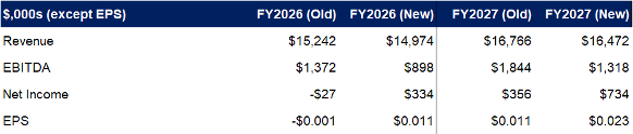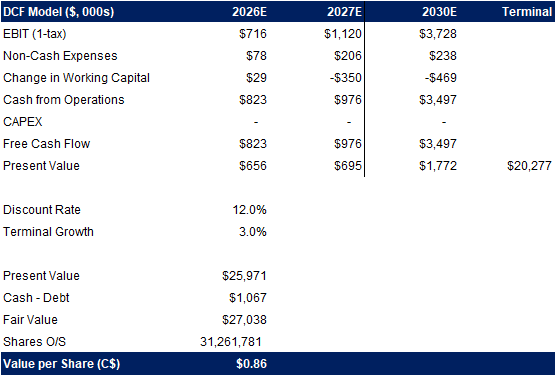 As a result of lower revenue, our DCF valuation declined from $0.92 to $0.86/share