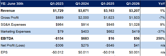 EPS turned positive: ($0.018) → $0.001, aided by higher revenue and lower marketing & depreciation expenses, while we were anticipating a small loss