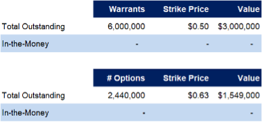Using the average sector EV/Revenue, we arrived at a comparables valuation of $0.59/share (previously $0.62/share)