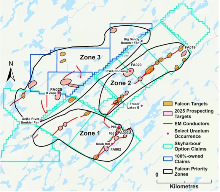 At the South Falcon East uranium project, Terra Clean Energy (CSE: TCEC, MCAP: $7M) reported results from its winter 2025 drill program (seven holes, 1,927 m), with four holes intersecting wide uranium zones.