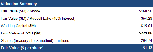 Applying sector multiples to SYH’s flagship assets, we arrived at a revised fair value estimate of $1.12/share (previously $1.01/share)