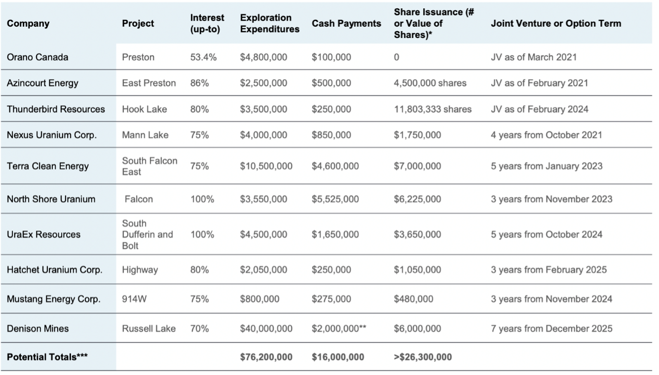 37 properties, covering 616,939 hectares, in the Athabasca basin