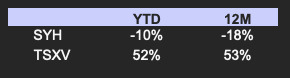 Upon completion of the Denison transaction, SYH will have approximately $9.5M in cash