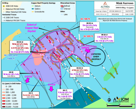 Last year, Althea completed a property-wide geophysical survey, delineating a major conductive body over 15 km long and open at depth, along with several new targets.