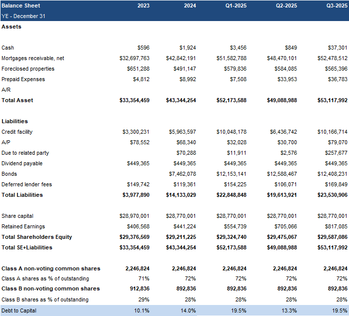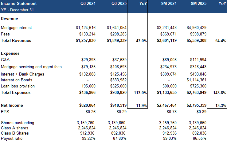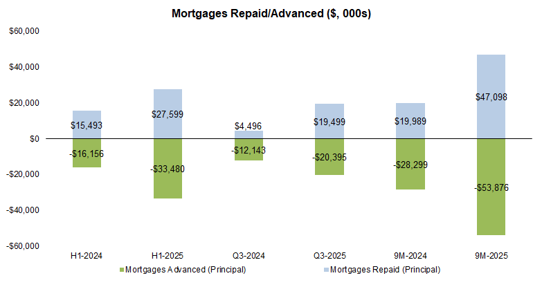 Mortgage advancements increased 68% YoY to $20M, the highest Q3 on record
