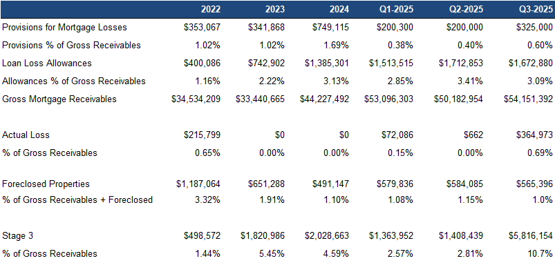 Stage three mortgages (impaired) increased 313% QoQ to 11% of mortgages