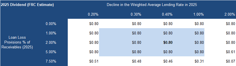 We are raising our 2025 EPS estimate due to higher-than-anticipated lending rates, partially offset by higher loan loss provisions