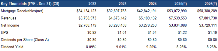 Note: Class A non-voting common shares are publicly listed, while Class B non-voting common shares are held by management and private investors. In terms of dividend distribution, Class A shares (public investors) rank first, followed by Class B shares. Class A shares will be paid $0.80 per share, before dividends are paid on Class B shares.