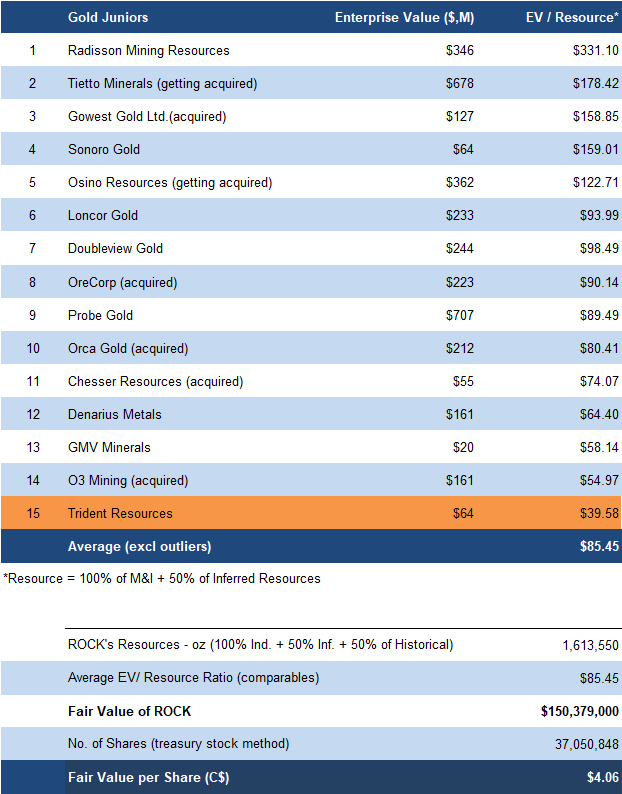 Applying the sector multiple to ROCK’s updated resource estimate, we arrived at a fair value of $4.06/share (previously $1.73/share)