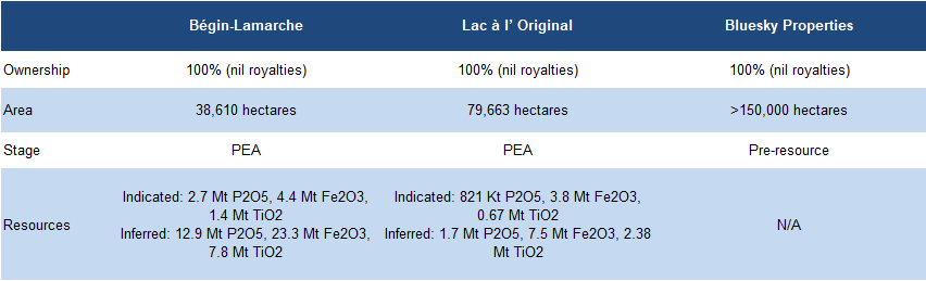 Two advanced-stage phosphate projects in Quebec, an emerging battery metal hub in Canada