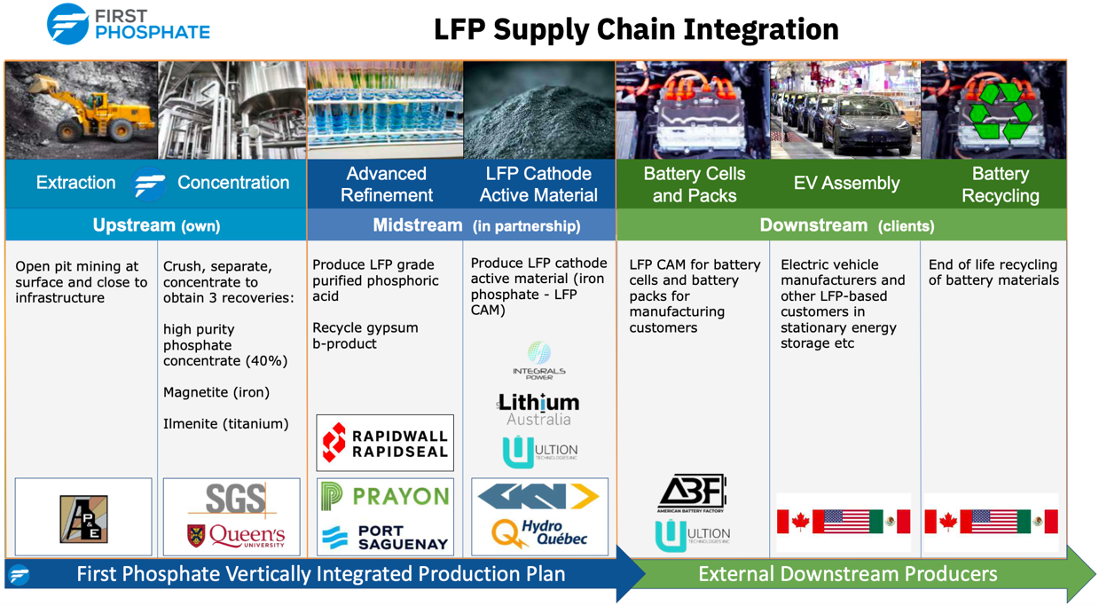Recent tests confirmed that LFP battery cells made using 100% North American-sourced critical minerals showed robust energy storage and power performance. PHOS supplied phosphate and iron from its Bégin-Lamarche property, while lithium and graphite were provided by other juniors. This achievement highlights the potential for a fully localized LFP battery supply chain.