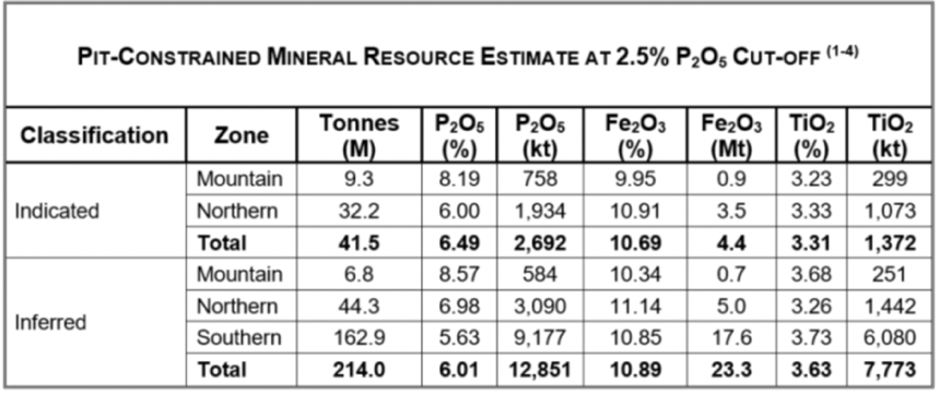 Pit-Constrained Resource Estimate (at 2.5% P2O5 cut-off)