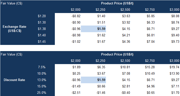 Given recent positive developments, we are lowering our discount rate assumption from 15% to 13% vs our usual 10-12% for North American projects