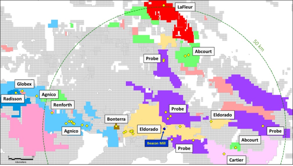The Swanson property is 66 km north of Val-d’Or, with the Beacon mill 50 km away