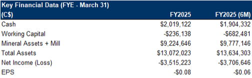 We are reiterating our BUY rating, and raising our fair value estimate from $1.04 to $1.10 /share. We base our valuation solely on our DCF model, as few projects offer a similar low-CAPEX, quick-to-production profile. We believe the market significantly undervalues the Beacon m ill , and the Swanson resource, highlighting a clear valuation gap . Upcoming catalysts such as the PEA, drill results, potential custom milling agreements, and project financing could unlock substantial value.
